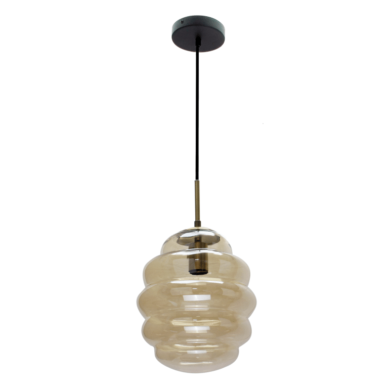 Breng een warme en sfeervolle uitstraling in je interieur met de Chericoni Hanglamp. Deze unieke hanglamp is vervaardigd uit prachtig glas en heeft een opvallende vorm die doet denken aan een honingraat of een wolkje, waardoor hij een echte eyecatcher is in elke ruimte. De rijke oranje- en bruine tinten van het glas zorgen voor een warme gloed en creëren een gezellige ambiance. De gouden fitting voegt een vleugje luxe toe, terwijl het zwarte snoer een modern contrast biedt. Deze combinatie van materialen en kleuren maakt de Chericoni hanglamp perfect voor boven de eettafel, in de woonkamer of als sfeervolle verlichting in de hal. Toch liever een grotere lamp? Kies dan voor onze Favo hanglamp Ø26 cm. Let op: Deze hanglamp wordt geleverd zonder lichtbron. Geschikt voor een E27 fitting, zodat je zelf een lichtbron kunt kiezen die bij jouw stijl en sfeer past.Formaat