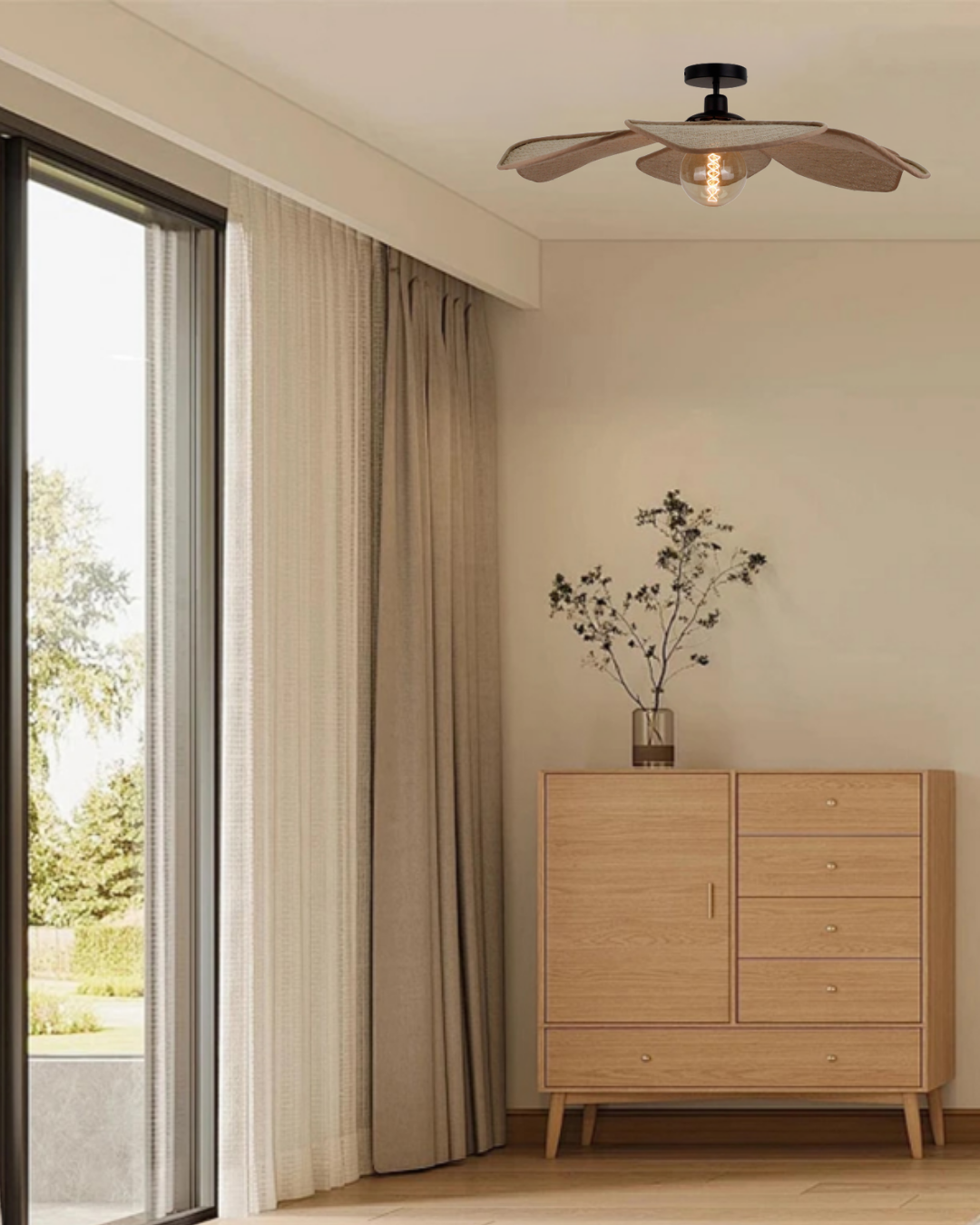 Breng de natuur naar binnen met de prachtige Chericoni Corvo plafondlamp, uitgevoerd met unieke bladvormige kappen van duurzaam sisal. Dit natuurlijke materiaal geeft de lamp een warme, organische uitstraling die perfect past in interieurs met een bohemian, landelijk of Japandi karakter. De lichte structuur van het sisal zorgt voor een zachte verspreiding van het licht en creëert een ontspannen sfeer in elke ruimte. Het verfijnde ontwerp maakt deze plafondlamp ideaal voor woonkamers, slaapkamers, of zelfs de eetkamer. De lamp combineert stijl en functionaliteit, terwijl de open vorm zorgt voor een ruimtelijk en luchtig gevoel. Voor een complete look is er ook een hanglamp beschikbaar in dezelfde serie, zodat je een harmonieus geheel kunt creëren in je interieur.Formaat